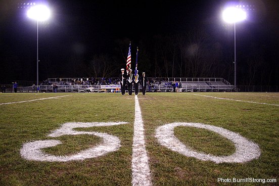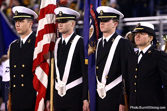 Prior to the game, the Navy ROTC presented the colors at midfield. It was a very nice touch; thanks should go out to the ROTC for agreeing to honor us with their presence.Â