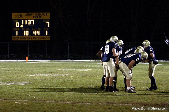 To start the game, Chelsea kicked to Gibraltar Carlson; Bulldogs fans became nervous when the Marauders returned the opening kickoff for a touchdown. But that would prove to be Carlson’s only score of the first half; Chelsea trailed only once in the game. The offense quickly tied the game with a touchdown pass to Connell, and after a quick Carlson three-and-out, the rout was on: at halftime, the Bulldogs had a comfortable 34-7 lead.