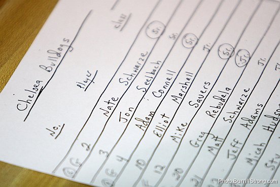 Chelsea’s roster awaits the start of the Bulldogs’ game against Ann Arbor Huron. Chelsea overcame a 15-point first-half deficit to defeat the River Rats 58-44.